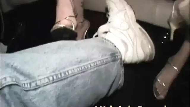 Two hot girls gang up on guys and fuck them hard in a car