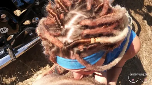 Outdoor footjob and blowjob with dreadlocks girl Cum on the face