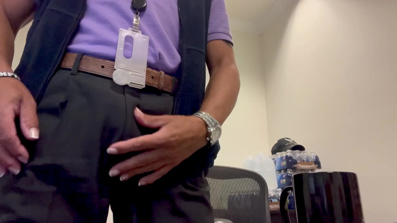 Hot blonde secretary in a tight skirt and high heels leans over to write something down. POV perspective shows a huge white cock emerge from behind the office door, blasting her desk and coffee cup with a thick load of cum.