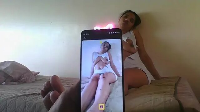This beautiful brown chick in a cute tanktop is blowing her BBC lover on webcam. She's from Jamaica and is also singing along to some sexy music. He cums all over her face as she moans in pleasure.